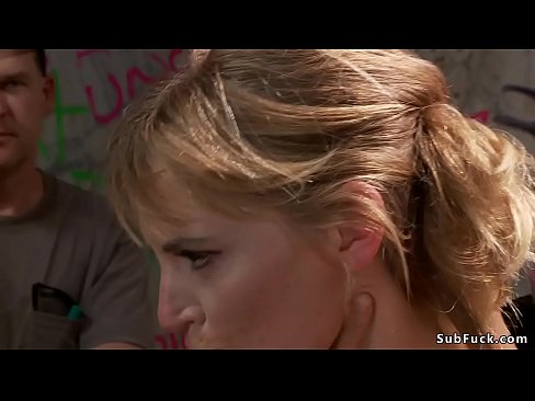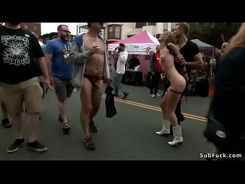 Blonde is pissed in street fair outdoor