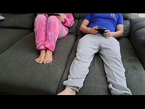 Stepsister sucks stepbrother and eats his sperm while he plays video games